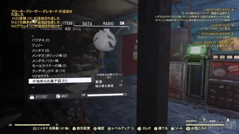 伝説級のスコーチ倒して不気味なお菓子袋も拾ってるんですが、ピップボーイ一通り探しても見当たらないと思ったらアイテムのAIDにありました。