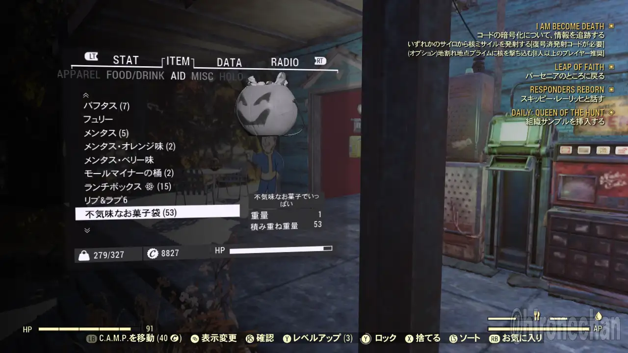 伝説級のスコーチ倒して不気味なお菓子袋も拾ってるんですが、ピップボーイ一通り探しても見当たらないと思ったらアイテムのAIDにありました。