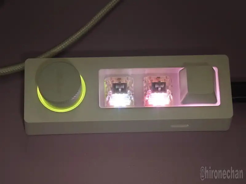 「3キー+ノブ」しかないですが、キー割り当てがレイヤー階層の5層になっているので、マルチにキー割り当てが出来ます。ノブは回転操作の他に押しボタンもあります。