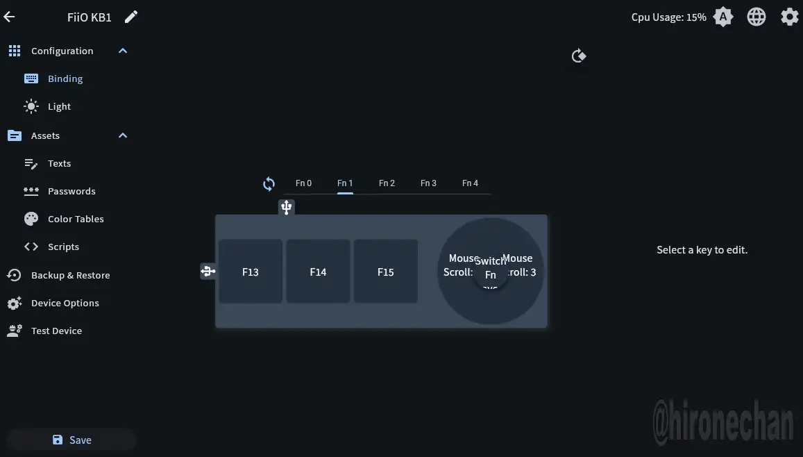 日本のFiiO公式サイトから専用ツールのページに行こうとすると「日本FiiO>サポート>KB1K>使い方>Fnキー割り当て>YouTubeのメーカー解説動画>動画概要欄にあるリンクをクリック」とかなり面倒でした。