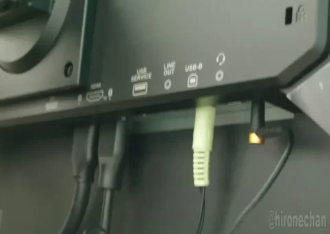 さっそく接続して使っていたのですが、モニターの操作が勝手に音量変わったり、リモコンと本体ボタンからも受け付けないことに気づきましてね、どうやらこのモニターのイヤホンジャックが4極でマイク入力の他に音量コントロールも出来るみたいで、これが原因で誤動作してました。