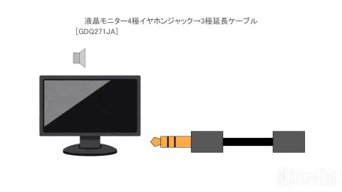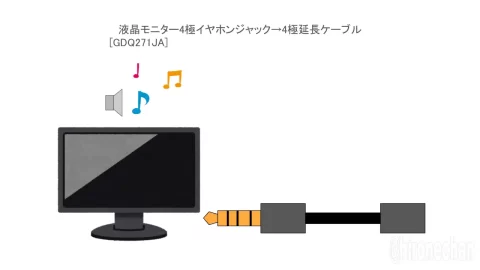4極延長ケーブル接続したらモニター内蔵スピーカーから音が出る