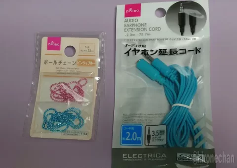 去年の11月に購入した液晶モニター「アイオーデータ KH-GDQ271JA」、モニターのライン出力にPCスピーカー、イヤホン出力に延長ケーブルからのイヤホンとして使っているのですが、イヤホンの延長ケーブルが1mなのでモニター縦にする際に短いと思いダイソーで2mの延長ケーブルを購入しました。