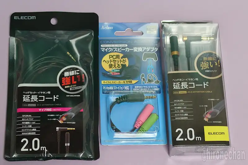 新しい金メッキの3極延長ケーブルで4極MICを無効化に。