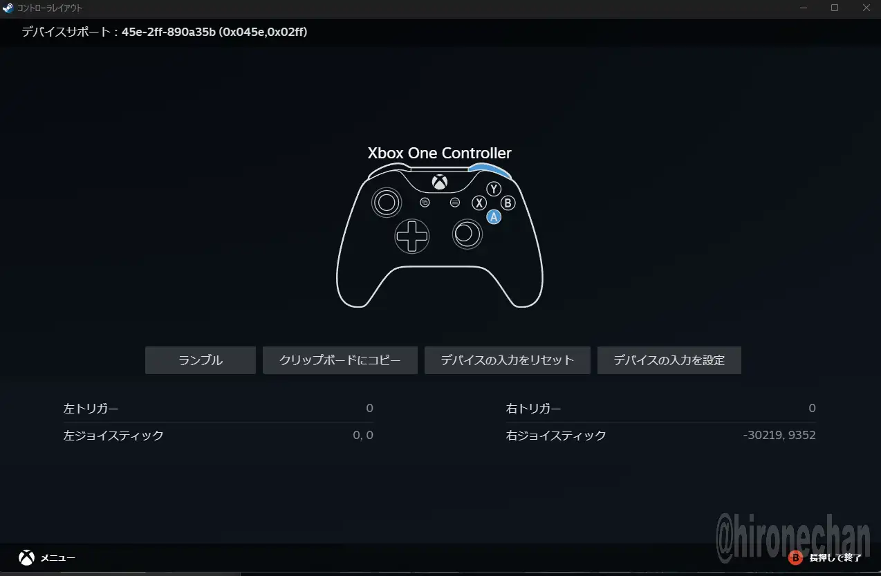 Steam上では前みたいに「Xbox One Controller」で認識されました。