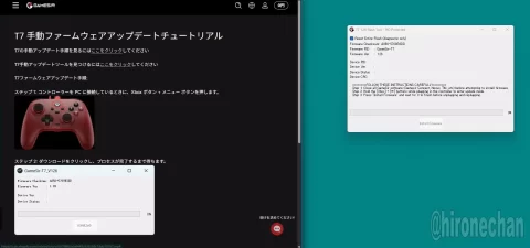 更新履歴の情報が書かれてなくダウンロードもファームウェア更新ツールのexeファイルだけで最悪コントローラーの文鎮化も頭によぎったのですが、使えなければ意味は無いので自己責任の下で更新します。