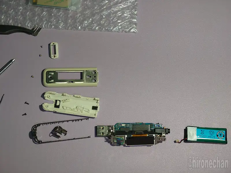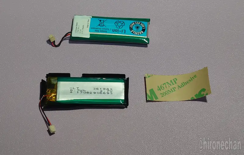 ただ、電池が切れる数秒の間に曲の再生が確認できたので、互換バッテリーに交換することにしました。